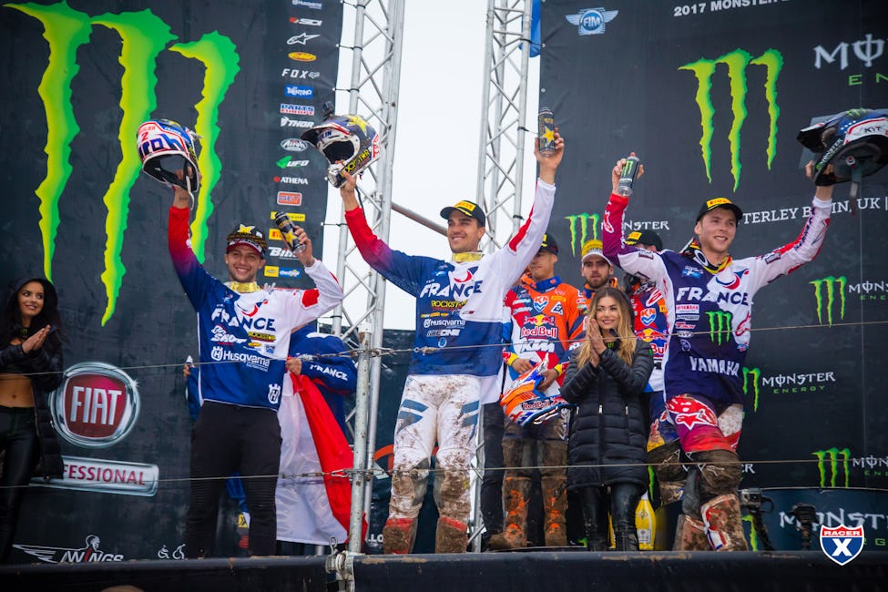 “I stopped motocross last year, but to have a good race like that was a lot of fun,” Charlier said after doing more than enough in MX2 to help France stay on top. “The team and staff did an excellent job. With the enduro season, I progressed in the mud. I think it is good to do a lot of things like enduro and motocross.”